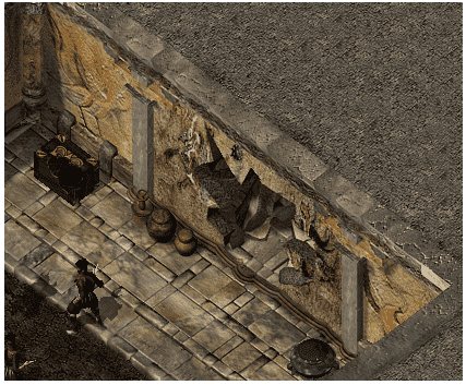 2.王陵1层,千年志取消了清怪才可以进入2层的限制,所以,直接跑吧,到地图右上角,进入王陵2层,王陵2层打开地图,跑到右上角位置,如图所示,打碎这面墙壁,会出现进入王陵3层的通道。