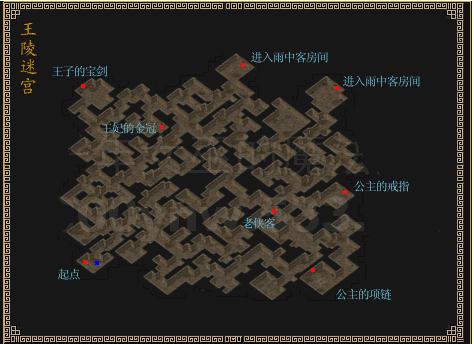 5.进入王陵4层后,按alt+s打开地图,按照下面路线图跑,跑至右上角,进入打先辈雨中客