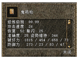 鬼鸣枪残页30个+护卫武士牌10个+金元500个=鬼鸣枪(NPC兑换)