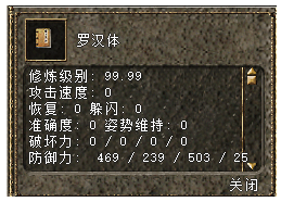 罗汉体残页30个+九尾狐牌10个+金元1000个=罗汉体(NPC兑换)