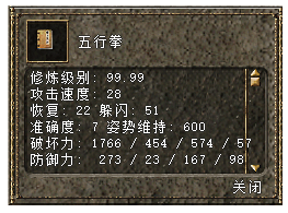 五行拳残页30个+四臂金刚牌10个+金元500个=五行拳(NPC兑换)